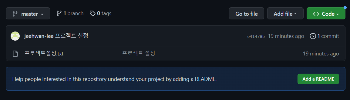 company 디렉토리에서 프로젝트설정.txt 파일을 만들고 commit 합니다.