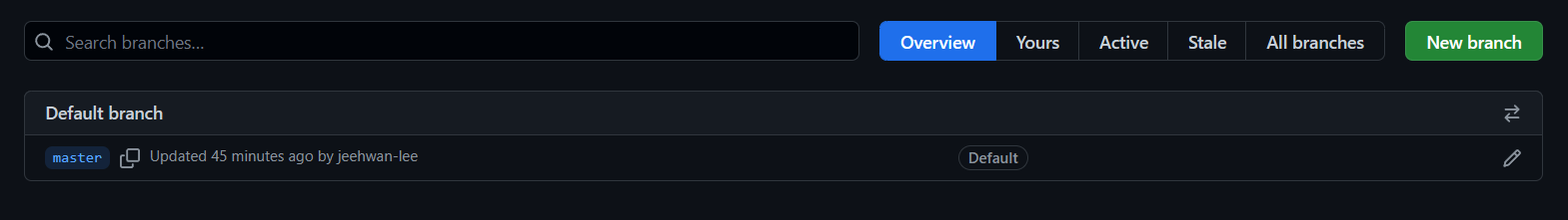 github 에서 위 사진의 branches 를 클릭해서 브랜치를 하나 만듭니다.