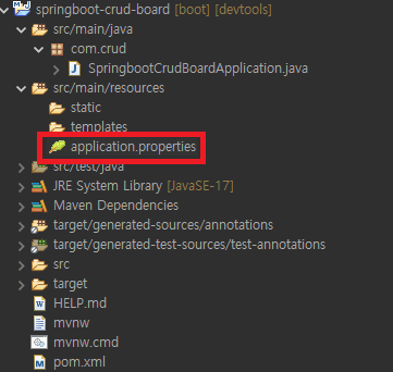 다음으로 resources 디렉토리에 있는 application.properties 에서 DB 설정을 해줘야합니다.