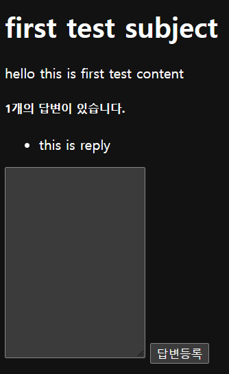 springboot 를 실행시키고 접속을 해보면 다음과 같이 답변 등록 폼이 보입니다.