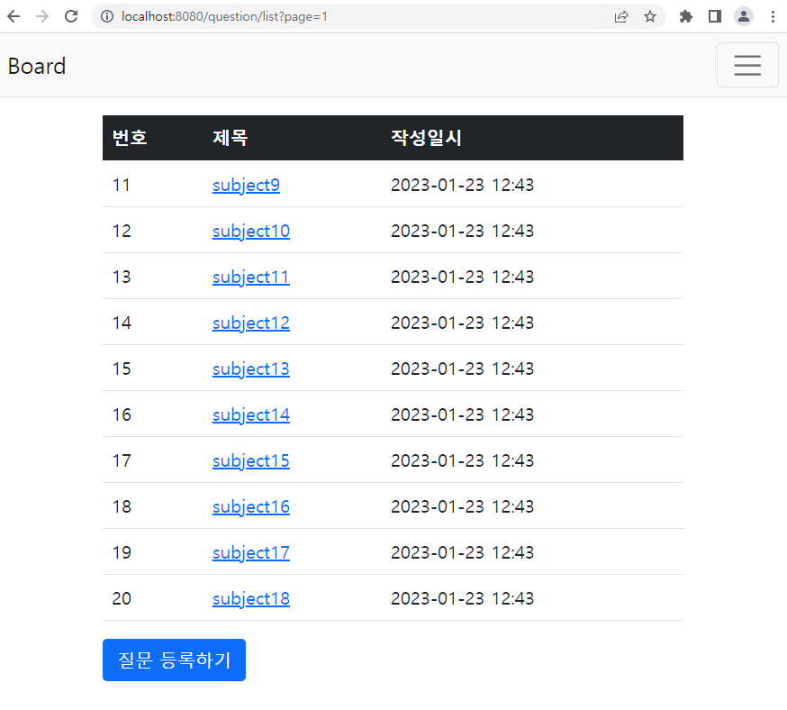 이번 포스트에서는 question 테이블에 저장된 게시글을 페이징 처리해서 브라우저에 보여주도록 하겠습니다.