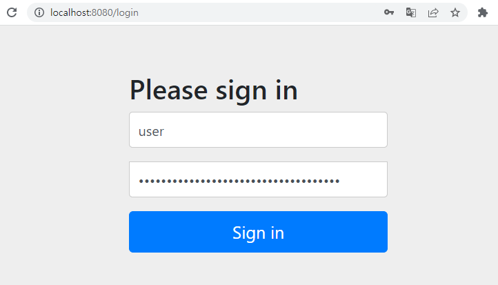 다음과 같이 user 와 password 를 입력하고 Sign in 을 클릭하면