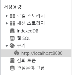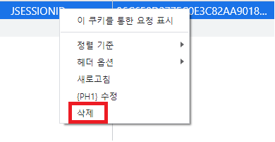 위와 같이 쿠키의 localhost:8080 를 클릭하고 삭제합니다.